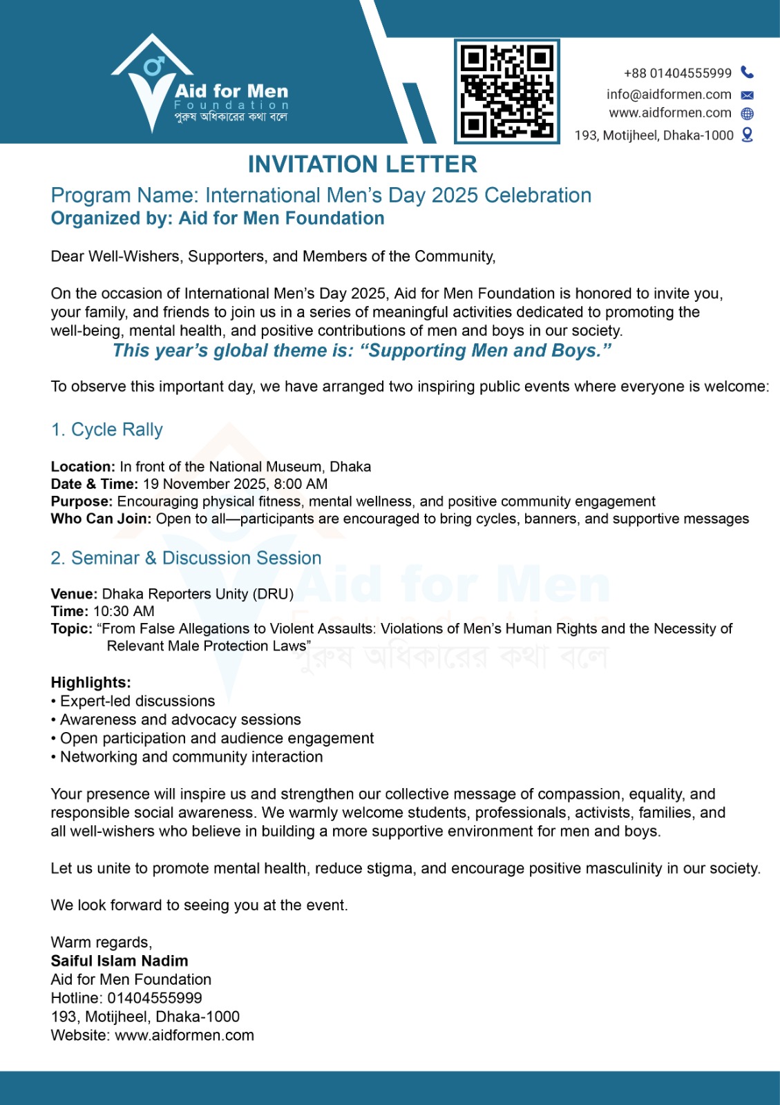 READ MOREআন্তর্জাতিক পুরুষ দিবস ২০২৫ আগামী ১৯ নভেম্বর বিশ্বব্যাপী পালিত হবে। দিনটি সমাজ, পরিবার, অর্থনীতি ও কর্মক্ষেত্রে পুরুষদের ইতিবাচক অবদানকে স্বীকৃতি দেওয়ার সুযোগ সৃষ্টি করে। একই সঙ্গে পুরুষদের মানসিক স্বাস্থ্য, সুস্থ জীবনযাপন, বৈষম্যহীন সমাজ এবং ইতিবাচক পুরুষত্ব গড়ে তোলার গুরুত্ব তুলে ধরা হয়। এ দিবসের মাধ্যমে পরিবারে দায়িত্বশীল ভূমিকা, নৈতিক মূল্যবোধ ও সামাজিক সচেতনতার প্রতি আরও উৎসাহ জাগানোই মূল উদ্দেশ্য।